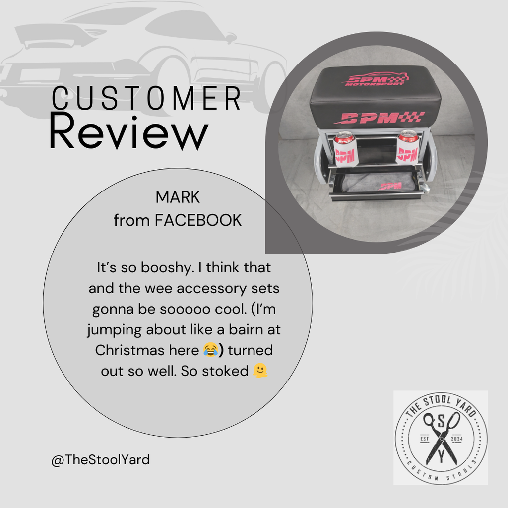 We love making custom stools, creepers, and accessories that people actually enjoy using—and it’s even better when our customers tell us we’ve nailed it. Here’s a collection of honest feedback from people who’ve got their hands on The Stool Yard creations.